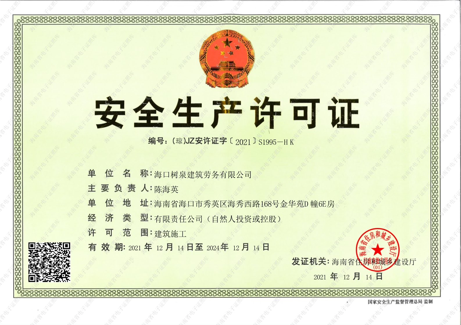 海口樹泉建筑勞務有限公司成立于2011年,公司位于海口,其前身是一家專業(yè)建筑施工隊,自2004年即開始在海南從事建筑勞務施工。自成立至今,公司已經擁有一支科學管理、質量過硬、能打硬仗,搶工期的專業(yè)隊伍。能獨立承擔大中型工業(yè)與民用建筑 、室內外裝修、各類機電設備安裝工程。代表工程有海口濱海華庭、三亞時代海岸T01/02/04/05棟高層、合肥東海花園二期、陵水富力灣B區(qū)高層、三亞金中海(酒店)、瓊海大印經典花園、海口環(huán)球海景大酒店(四星級酒店,在建中)、陵水珍珠大廈(五星酒店)、海口萬達廣場、美蘭機場二期。